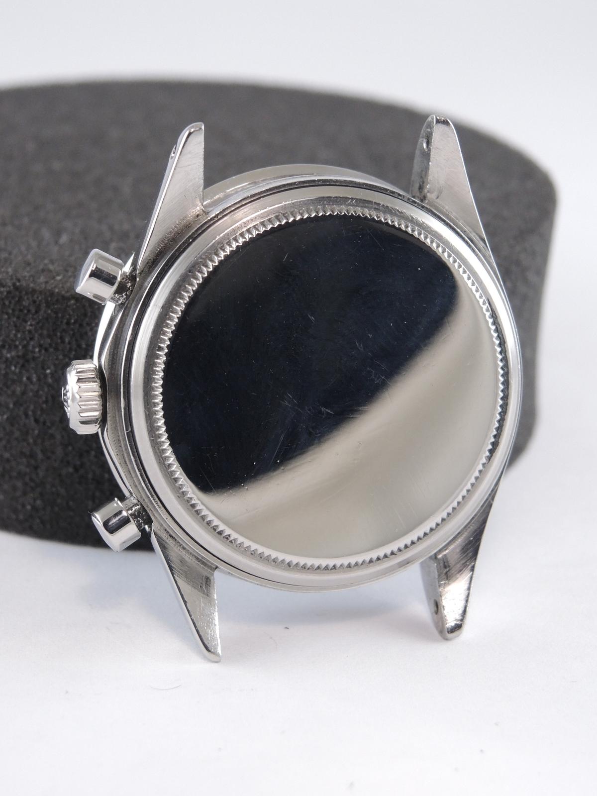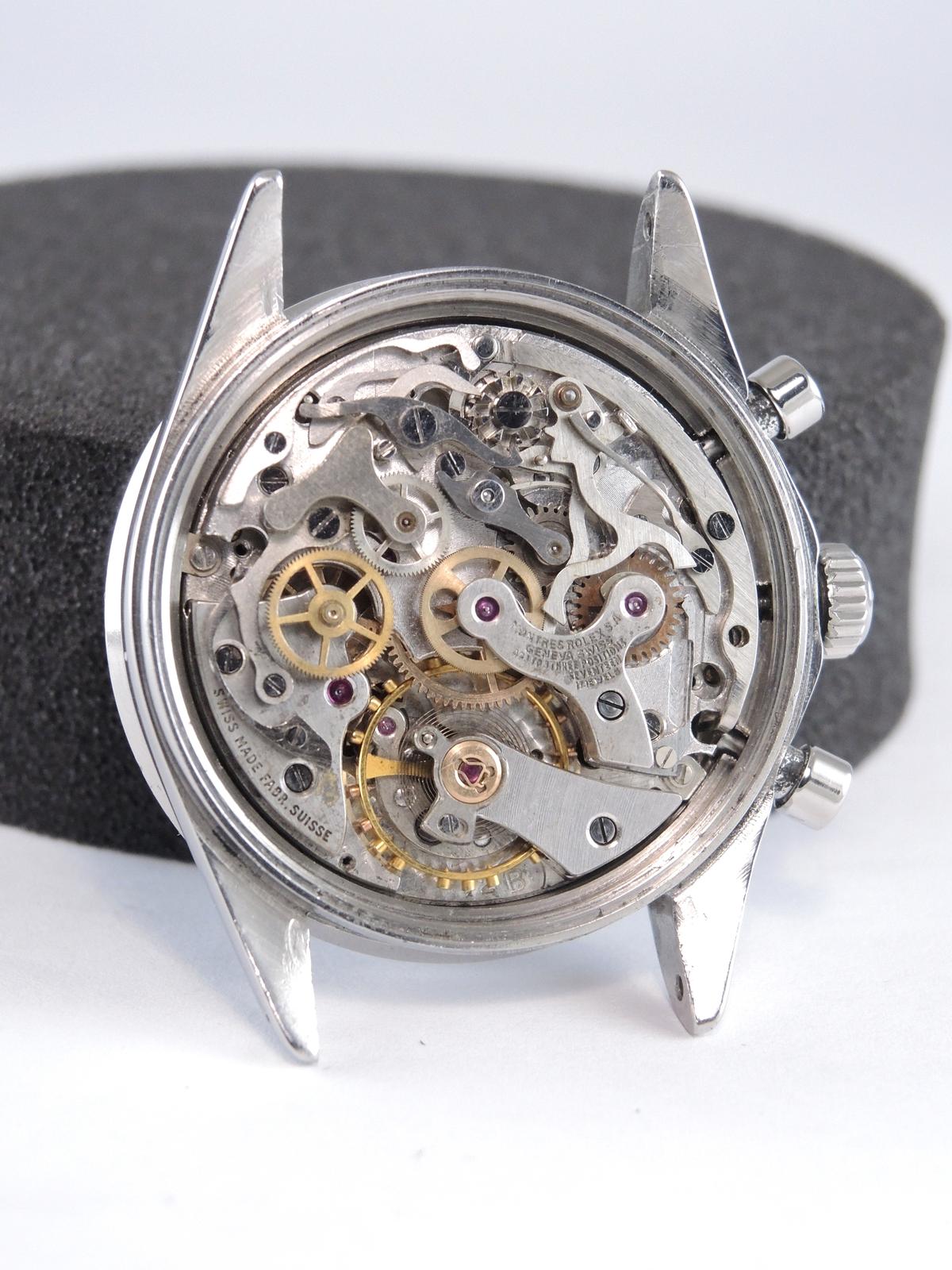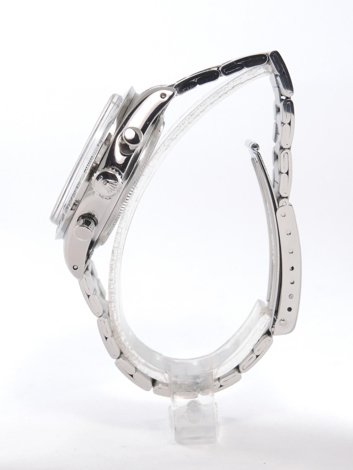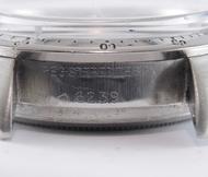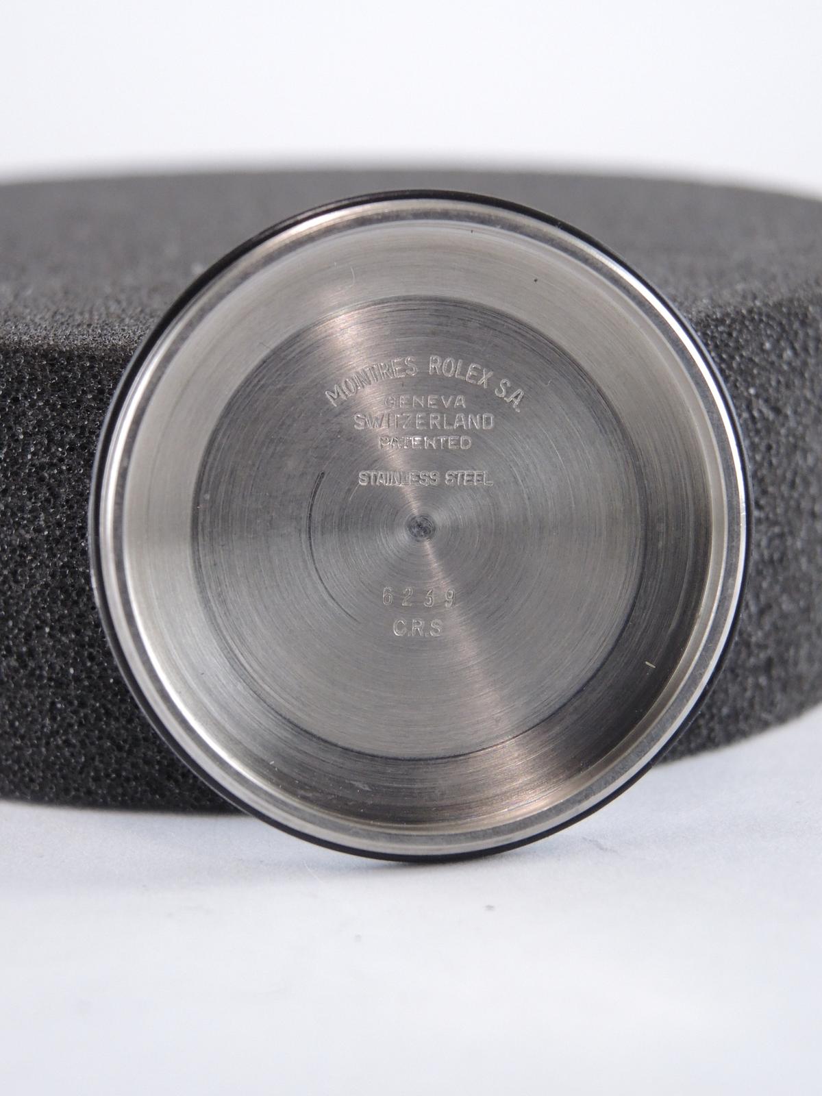 52 500 €Daytona 6239 "Big Daytona" Full steel, Oyster bracelet, sunburst silver dial "Big Daytona" "T Swiss T"-", applied stick markers, three registers, steel tachymeter bezel, plexiglass, screw down crown, pump pushers, hand wound movement, caliber Valjoux 72B. The first Cosmograph Daytona!