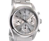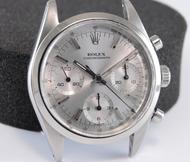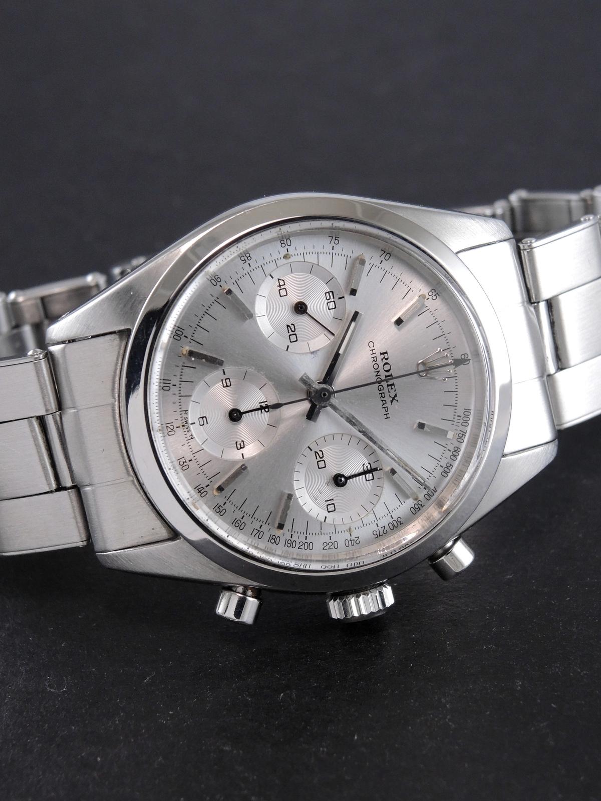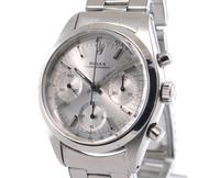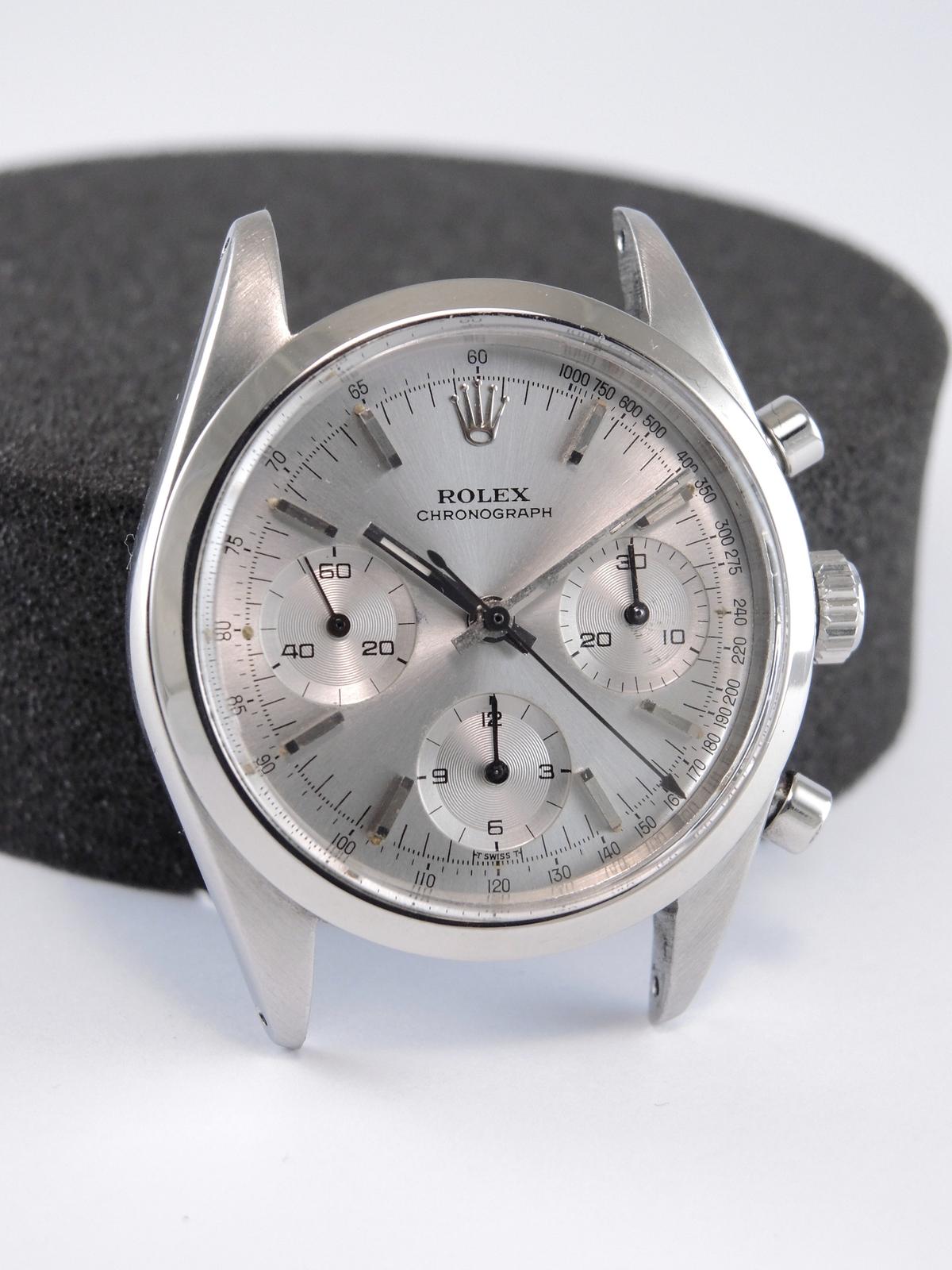 45 000 €Pre-Daytona Gunmetal 6238 Full steel, riveted Oyster bracelet, ultra rare gunmetal dial "T Swiss T", applied stick markers, perfect patina, chronograph, three registers, smooth bezel, plexiglass, pump pushers, screw down crown, hand wound movement. The mother of all the Daytona’s !